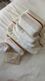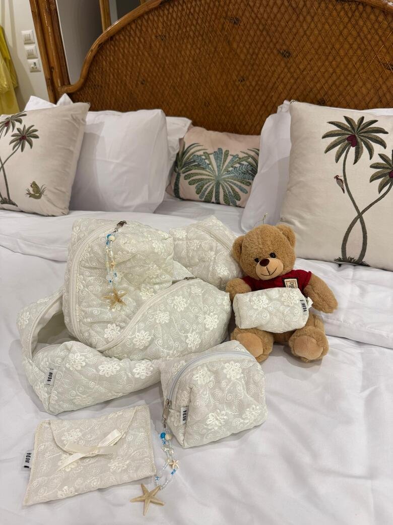 The set contains 7 pieces: Max size pouch, large size pouch, small size pouch, mini size pouch, pad cover, pocket
